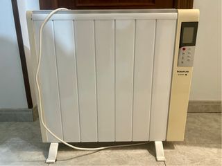 Radiador eléctrico de gran tamaño, ideal para calentar estancias. - Color gris y blanco. - Fabricado en metal y plástico. - Ruedas para facilitar su movilidad.