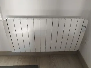 Radiador eléctrico en buen estado. Es de color blanco y está hecho de metal. NO SABEMOS CÓMO FUNCIONA, NOS HEMOS COMPRADO UN PISO Y ESTABA DENTRO TENEMOS DOS IGUALES 15€ cada uno