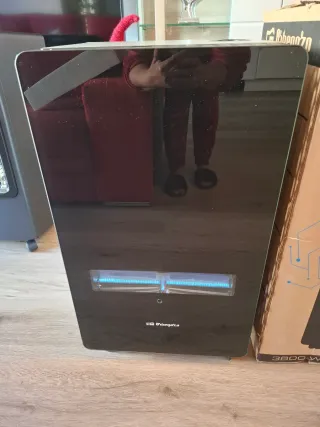 Calefactor de panel de cristal negro de la marca Princess. Diseño moderno y elegante. - Panel frontal de cristal. - Base de plástico. - Controles táctiles.