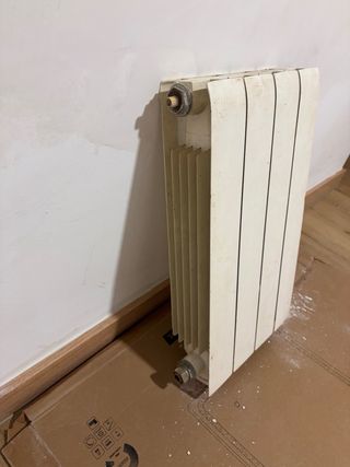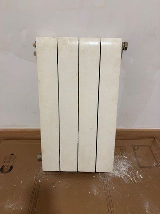 Radiador aluminio de 6 elementos en color blanco. Casi sin uso, instalado durante un año en la entrada. Lo retiré para poner muebles. Incluye lo que se ve en la foto (no incluye llave) Altyra 54.5cm ancho 47.6cm