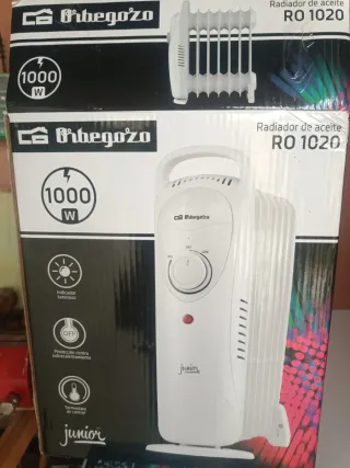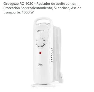 Radiador de aceite Orbegozo RO1020 Junior. Compacto y fácil de transportar. - Potencia de 1000 W. - Protección contra sobrecalentamiento. - Funcionamiento silencioso. - Asa de transporte integrada.