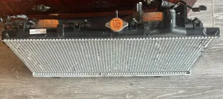 Conjunto de radiador y condensador para BMW E46. Incluye ventilador y manguitos. El radiador es nuevo - Radiador de refrigeración. - Condensador de aire acondicionado. - Ventilador eléctrico. - Manguitos de conexión.