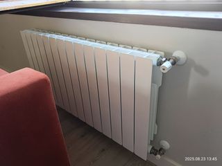 Radiador de calefacción en color blanco. - Fabricado en metal. - Incluye soportes de montaje. - Color blanco - Instalado pero no llegó a usarse. Medidas: Largo 112cm Largo con las válvulas 114,5cm Ancho 10cm Alto 51cm Distancia entre ejes 45cm En perfecto estado.