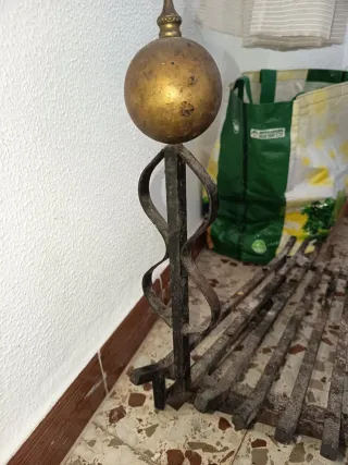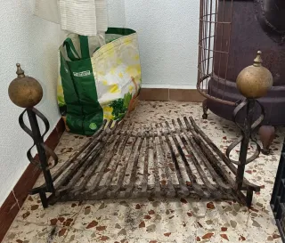Parrilla de metal con un diseño decorativo, ideal para chimeneas. RECOGIDA EN CHICLANA DE LA FRA.