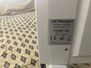 Calefactor electrónico de mica. - Modelo: RM 1510 - Potencia: 1500 W - Voltaje: 230 V~50 Hz - Fabricante: Sonifer, S.A. - Dirección: Avda. de Santiago, 86, 30007 Murcia, España.