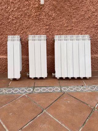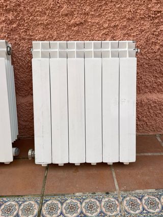 ¡Oportunidad! Se venden 8 radiadores de agua de aluminio de diseño moderno. Se encuentran en perfecto estado, totalmente limpios y listos para ser instalados. Detalle de las unidades disponibles:(Largo x Alto x Ancho) 1 de 16 elementos: 127,5 x 48,5 x 8 cm 1 de 14 elementos: 112 x 48,5 x 8 cm 1 de 13 elementos: 104 x 68,5 x 8 cm 1 de 11 elementos: 88 x 48,5 x 8 cm 2 de 9 elementos: 72 x 48,5 x 8 cm 1 de 5 elementos: 40 x 78,5 x 8 cm 1 de 4 elementos: 331,5 x 48,5 x 8 cm Características principales: Material: Aluminio. Estado: Muy cuidados, sin golpes ni fugas. Estilo: Moderno, color blanco. Punto de recogida: Granada capital.