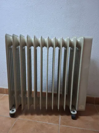Radiadores clásicos de hierro fundido en buen estado. Ideales para instalaciones de calefacción tradicionales o restauración de viviendas. Muy robustos y con gran capacidad de inercia térmica. Disponibles: • 1 radiadores de 20 elementos • 2 radiadores de 14 elementos • 2 radiadores de 12 elementos • 1 radiador de 10 elementos • 3 radiadores de 6 elementos Se venden juntos (200€) o por separado (20€ cada uno) Funcionaban correctamente hasta su desmontaje
