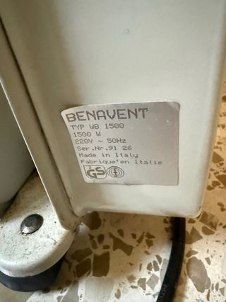 Se vende un radiador eléctrico en Granada capital por 25 Euros. No hago envíos, sólo entrego en mano. Está usado, pero se mantiene en buen estado y funciona correctamente. Alimentación por electricidad. Potencia 1500W. Dos resistencias. Cuatro ruedas. Mide 45cm de largo, 16cm de ancho y 66cm de alto. Ideal para mesa camilla. Color beige. Cable de alimentación de 1,2 metros de longitud. Barato económico oferta segunda mano calor calefactor calefacción brasero aceite piso estudiantes alquiler. ¡Entra en mi perfil para ver otros artículos interesantes! Soy vendedor 100% fiable (más de mil valoraciones positivas de otros compradores).