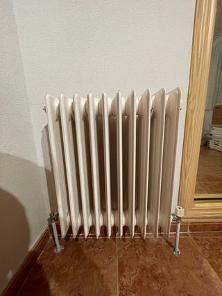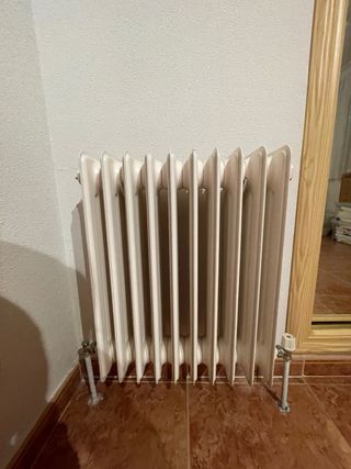 Se vende conjunto de 8 radiadores metálicos en color blanco, listos para instalar en tu reforma o sustitución de sistema de calefacción. Perfectos para pisos, casas o locales que necesitan aumentar o renovar los emisores térmicos. Detalles importantes: Material: metal. Color blanco, neutro, que combina con todo tipo de ambientes. Buen estado general: sin óxido visible, sin golpes grandes, listos para uso inmediato. Ideal para reemplazo múltiple o para usar en varios ambientes.