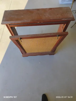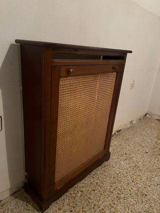 Mueble cubre radiador madera y mimbre