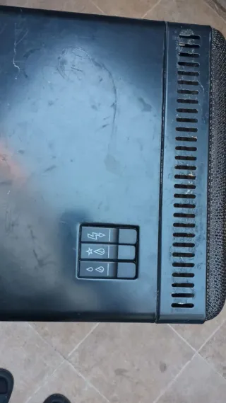 Calefactor eléctrico de la marca abm, en color blanco y material metálico. Se encuentra en buen estado. - Funciona con sistema de termostato. - Dispone de varios niveles de potencia. Se venden 2 acumuladores de 1metro