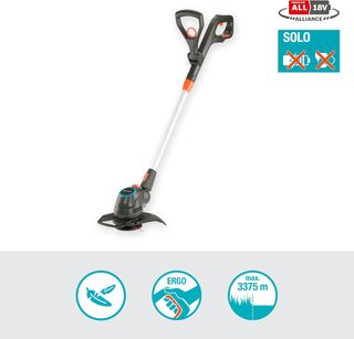 Gardena Recortadora a batería ComfortCut 23/18V P4A sin batería: Recortadora de césped con diámetro de corte de 230 mm, mango telescópico y cabezal de corte orientable (14701-55) MarcaGardena Fuente de alimentaciónHand Powered ColorTurquesa/Negro/Gris/Naranja/Antracita Peso del producto3100 Gramos Anchura de corte230 Milímetros Dimensiones del producto123l. x 38an. centímetros Recortes sin esfuerzo: gracias al reducido peso de 2,5 kg, al mango ajustable y a la pértiga telescópica, se puede mantener una postura relajada durante el recorte Sin cables: con su potente batería de 18V, la recortadora de césped de Gardena proporciona un...