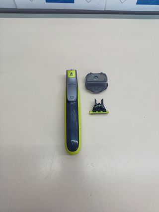 Recortadora y afeitadora eléctrica Philips OneBlade para hombre. Incluye 1 cuchilla, 5 longitudes de corte y hasta 45 min de uso. Apta para uso en seco y mojado, recargable. Modelo QP2724/30 en color negro. ⚠️LE FALTAN ACCESORIOS Y CUCHILLA. A33M-J ✅ SOMOS TIENDA Calle Andreu Soler 7, San Adrián del Besós, Barcelona Lun-Sáb 10:00-14:00 & 16:30-20:00 ♻️ DEVOLUCIÓN AMAZON REVISADA ⚠️ Lo que hay en las fotos es todo el contenido