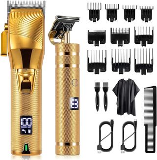 Kit maquina cortapelos JUEGO DE MÁQUINAS DE CORTE DE PELO PROFESIONAL: Este recortador de cortadora de pelo contiene un cortador de barba profesional para hombre y un cortador de detalle. El cortapelos más grande es un recortador de barba profesional muy rápido y fresco con carcasa de metal para engrasar, dar estilo y cortar. Equipado con cuchillas ajustables, el cortador de pelo puede cortar todo tipo de cabello y longitudes sin esfuerzo. El pequeño es un recortador muy fino para barbas, patillas, cejas y más.