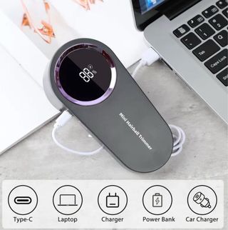 Recortadora de pelo eléctrica con un diseño elegante y moderno. - Mango con textura antideslizante para un mejor agarre. - Cuchillas de precisión doradas.