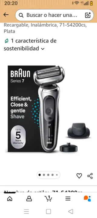 Braun Series 7 Afeitadora Eléctrica Hombre, Máquina de Afeitar Barba con Accesorio de Recortadora de Precisión, Base de Carga, uso en Seco y en Mojado, Recargable, Inalámbrica, 71-S4200cs, Plata. C94L-i. ✅ SOMOS TIENDA Calle Andreu Soler 7, San Adrián del Besós, Barcelona Lun-Sáb 10:00-14:00 & 16:30-20:00 ♻️ DEVOLUCIÓN AMAZON REVISADA ⚠️ Lo que hay en las fotos es todo el contenido