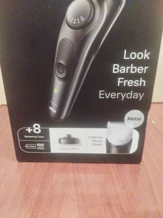 Sin estrenar, con todos los ascesorios que se muestran en las fotografias. Manual de instrucciones. En caja PVC y con neceser para llevar de viaje. Calidad profesional. Barbero. Recorta barba