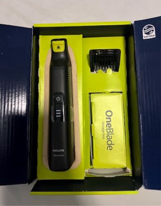 Recortadora Philips OneBlade Pro con tecnología 360 blade. Seminueva - Incluye 14 ajustes de longitud. - Viene con kit para el cuerpo. - Autonomía de 90 minutos.