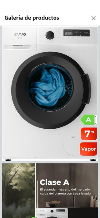 precintada, sin estrenar Lavadora de carga frontal Evvo con capacidad de 7kg y tecnología EVVO Lavadora 7kg, Vapor, Clase A, Motor Inverter, Lavado Rápido 15', Estrecha 40cm Profundidad, Bajo consumo, 1400 rpm, 15 programas, Inicio Diferido, Carga frontal, Blanco, Terra (7Kg) - Clase energética A. - Función vapor. - Diseño moderno y eficiente.