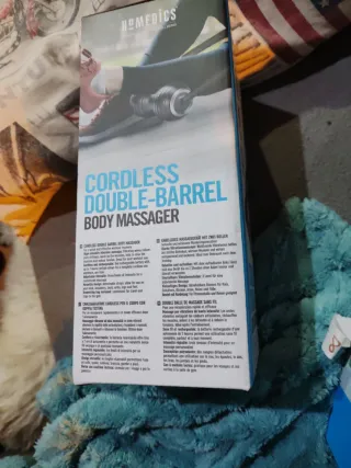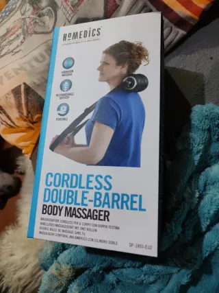 Masajeador corporal HoMedics con doble barril. - Masaje vibratorio. - Batería recargable. - Portátil.