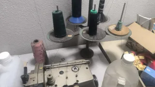 Máquina de coser industrial remalladora modelo Rimoldi. Con soporte para hilos (los hilos no) Funciona perfectamente. No se hacen envíos.