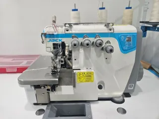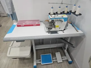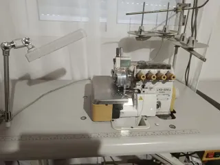 Remalladora industrial JACK de 5 hilos. Ideal para acabados profesionales. - Modelo JACK E4S-5-03/333 3x4 -5 hilos, 2 agujas - Incluye mesa de trabajo y pedal. - Soporte para hilos. -puntada de seguridad -ancho de costura 5mm, ideal para acabados finos - distancia entre agujas: 3mm - velocidad maxima 5500ppm -motor servo silencioso - sistema de alimentación diferencial: evita deformaciones en tejidos elasticos Comprada en zafitex por 850 euros el 31/03/2024 No ha tenido uso indistrial, ha sido usada en un taller de prendas a medida por lo que está nueva. Venta por cierre de taller. Revisión hecha el 23/10/26 por la misma empresa
