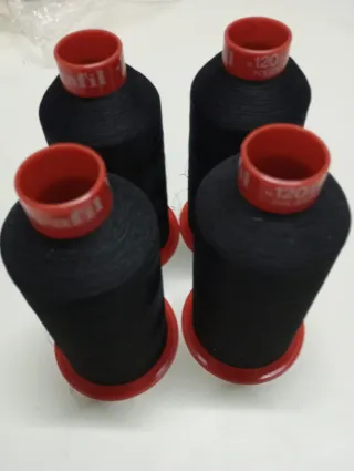 Lote de cuatro bobinas de hilo para remalladora. - Color: Negro. - Material: Poliéster. - Grosor: 120.