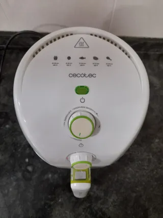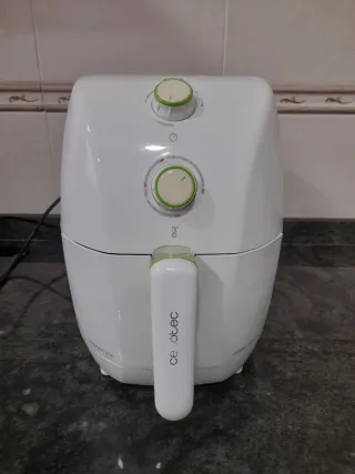 Freidora de aire Cecotec en buen estado. Su diseño blanco se adapta a cualquier cocina. Funciona correctamente - Dos mandos giratorios para control de tiempo y temperatura. - Asa extraíble para facilitar su uso.