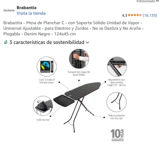 Tener espacio es fabuloso. ¡Y perfecto para planchar! Esta tabla de planchar C de Brabantia de tamaño XL con soporte para unidades de vapor te ofrece 124 x 45 cm de espacio de planchado, con lo que te ahorras la engorrosa tarea de ir moviendo la prenda por toda la tabla. Con un robusto soporte metálico para tu unidad de vapor, armazón sólido y ajustable y funda PerfectFlow de triple capa que facilita el planchado, esta mesa es la incorporación perfecta a tu hogar.