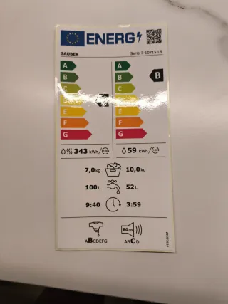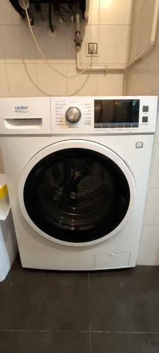 Lavadora secadora de la marca Sauber con capacidad de 10kg. Silenciosa, funciona muy bien. Vendo por cambio de vivienda. - Color blanco. - Panel de control digital. - Puerta frontal. - Compartimento para detergente.