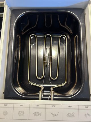 Mini horno de sobremesa Moulinex Optimo (modelo OX464810/HZA). Tal cual aparece en las fotos. Lo he limpiado con varios productos y frotando por dentro, pero hay ciertas manchas de grasa en la parte interior superior. Capacidad: 33 litros. Potencia: 1600 W. Cuenta con 6 modos de cocción, incluyendo convección, grill y descongelación. El control es mecánico, con termostato ajustable hasta 240 °C y temporizador. Incluye una rejilla reversible y una bandeja antiadherente.
