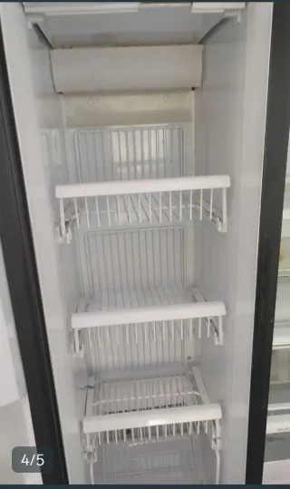 Nevera vertical de gran capacidad. - Estantes interiores de cristal. - Puerta con compartimentos. - Diseño moderno. Hay que hacer limpieza y cambiar las gomas