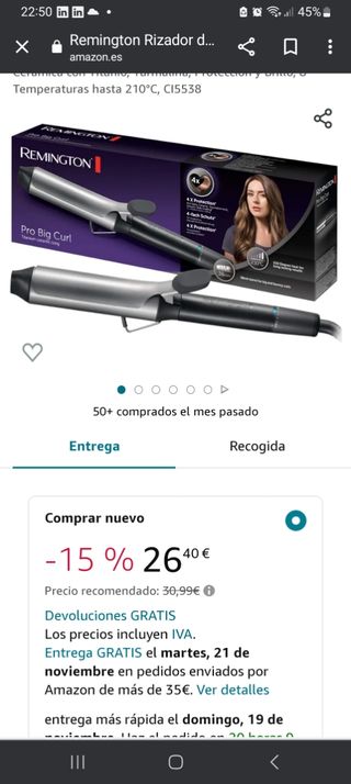 rizador pelo Remington 25€ y plancha con ingredientes 15€