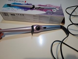 Moldeador rizador de la marca Remington. Ideal para crear diferentes estilos de peinado. Regulador de calor, varias intensidades. Botón encendido/apagado con luz. Usado un par de veces, está impecable. Funda original. - Tenaza con acabado dorado - Mango en color negro.