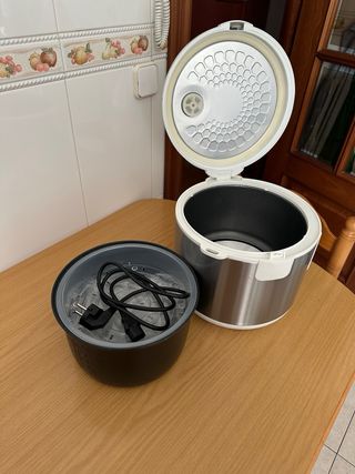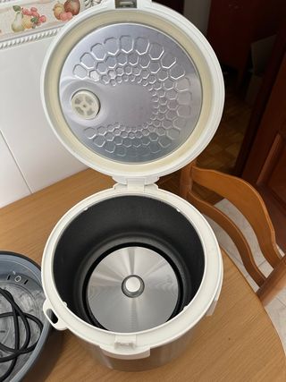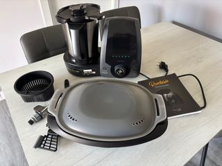 Vendo Cecotec Mambo en muy buen estado. Robot de cocina muy completo que permite cocinar, picar, triturar, amasar, sofreír, cocinar al vapor y muchas funciones más. Incluye varios accesorios originales: • Jarra de acero inoxidable • Vaporera de 2 niveles con tapa • Cestillo para hervir • Mariposa para mezclar • Espátula • Cuchillas • Recetario original Es muy fácil de usar gracias a su pantalla digital y programas automáticos. Ideal para preparar desde cremas, arroces y guisos hasta masas o postres. ✔ Funciona perfectamente ✔ Muy poco uso ✔ Se entrega con todos los accesorios de la foto