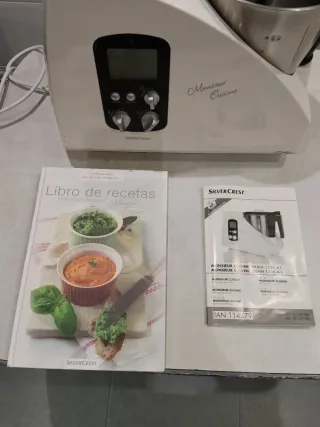 Robot de cocina Monsieur Cuisine de Silvercrest, modelo SKMH 1100 A1. Incluye libro de recetas. - Robot de cocina multifunción. - Libro de recetas Libro de recetas para el robot de cocina Monsieur Cuisine. - Manual de instrucciones.