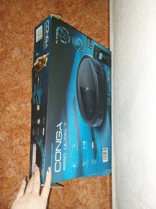 Robot aspirador Conga 4090 con todos sus accesorios. En buen estado, lo vendo por cambio por otro modelo compatible con la domótica de mi casa. Se entrega: - Robot Conga 4090. - Base de carga. - Mando a distancia. - Cepillo principal x4 - Cepillos laterales x5 - Filtros HEPA x3 - Mopas de fregado x4