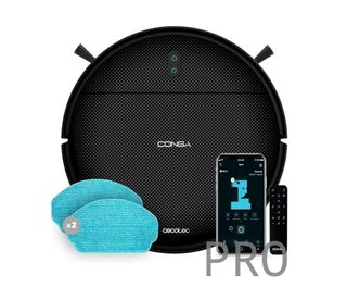 Robot aspirador Cecotec Conga 1790 en color negro. Incluye cepillo central. - Diseño redondo. - Panel de control táctil. - Compatible con asistentes de voz.