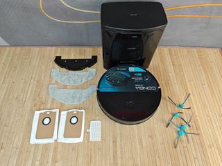 Robot aspirador CONGA 3090: - Cuatro cepillos atrapapelos nuevos más el que tiene puesto la aspiradora. - Tres filtros epa nuevos. - Tres mopas para fregar más la que está en la máquina. - Dos paquetes de filtros para fregar. - Estación de carga y cable. Tiene mando a distancia y se conecta a la app Funciona perfectamente
