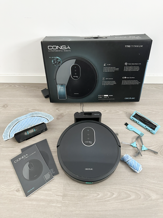 Robot aspirador Conga 5490, con función de fregado. - Tecnología All in One. - Potencia de succión de 10000 Pa. - Cepillo Jalisco Brush. Cepillo para mascotas y cepillo normal. -varios niveles de succión y fregado. - Compatible con Alexa y Google Assistant. - Conectividad Wi-Fi. Usado pero en perfecto estado. Lo vendo porque hemos comprado otro nuevo de características superiores. Lo vendo con todos los accesorios de repuesto que aparecen en la foto, nuevos sin usar. No hago envíos, solo venta al contado y en persona.