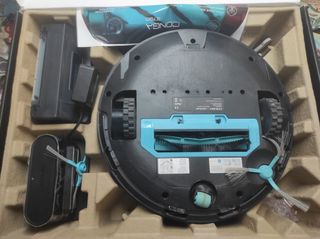 Robot aspirador Conga Cecotec 6090 con todos los accesorios originales. - Robot aspirador. - Base de carga. - Mando a distancia. - Cepillo principal. - Depósito de agua. - Mopa. - Cepillo lateral.