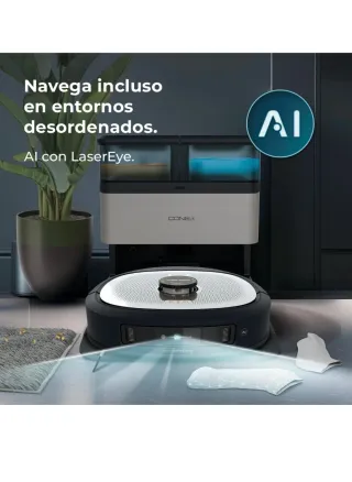 Robot aspirador Cecotec Conga M50 X-TREME con navegación láser. - Potencia de succión de 5000 Pa. - Cubre hasta 160 m². - Conectividad Wi-Fi y app móvil. - Funciona en frecuencia de 2,4 GHz.