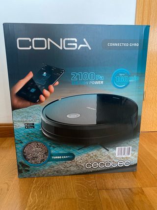 Aspirador robot Conga Cecotec con alta potencia de succión. COMPLETAMENTE NUEVO!! Sacado de la caja para las fotos!! - 2100 Pa de potencia de succión. - Autonomía de hasta 160 minutos. - Conectividad Gyro. - Apto para alfombras (Turbo Carpet).