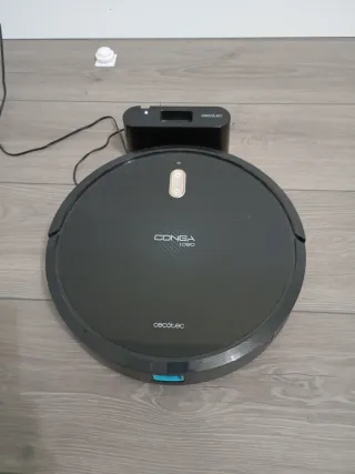 Robot aspirador Cecotec Conga 1090 en buen estado. Incluye base de carga. - Aspira, friega y barre. - 3 intensidades de fregado. - 4 modos de limpieza.