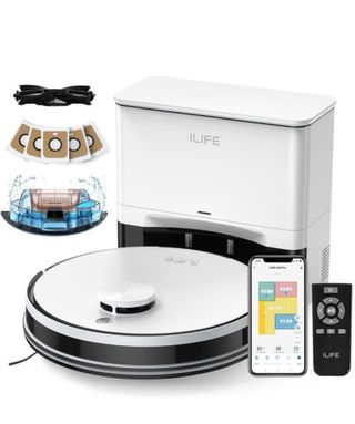 Precintada Aspiradora robot ILIFE, ideal para mantener tu hogar limpio. Este modelo incluye una estación de autovaciado para mayor comodidad. - Estación de autovaciado - Navegación LDS avanzada - Potente succión - Control por app y voz - Batería de larga duración