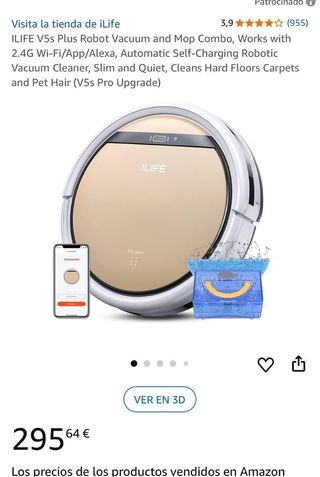 ILIFE V5s Plus Robot Aspirador y Fregona en color dorado. Está prácticamente nuevo. - Limpia suelos duros y alfombras. - Aspira y friega simultáneamente. - Se conecta a través de Wi-Fi y app. - Compatible con Alexa. - Es delgado y silencioso.