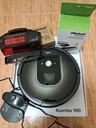 Aspirador robot iRobot Roomba 980. - Incluye base de carga. - Incluye depósito aerovag con filtro y motor nuevo a estrenar original de roomba, aparte del suyo - Incluye kit de reemplazo con filtros,rodillos y aspas laterales. - Incluye 2 paredes virtuales.