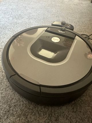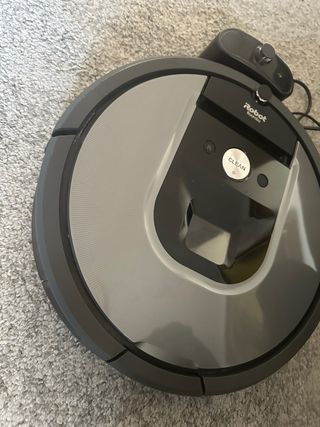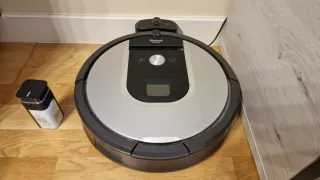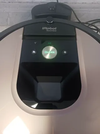 Robot aspirador iRobot Roomba 965 en color negro y plateado. Incluye su base de carga. - Modelo Roomba 965. - Diseño redondo. - Botón CLEAN en la parte superior. - Accesorios incluidos. - Aplicación iRobot con seguimiento de trabajos y mapa de zona limpiada. Prácticamente nueva, también por envío.