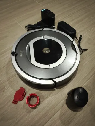 Robot aspirador iRobot Roomba 780. - Incluye base de carga. - Incluye adaptador de corriente. - Incluye accesorio de limpieza. - Una virtual ball. - se puede tratar con batería nueva.. - Está limpio y engrasado