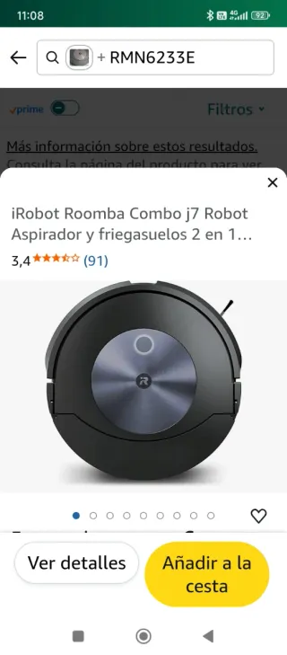 Robot aspirador iRobot Roomba Plus 505 Combo, acompañado de la Base AutoWash multifunción que se autolimpia y permite mantener el robot siempre listo para su uso. Este modelo combina aspirado y fregado, ideal para mantener tu hogar impecable con el mínimo esfuerzo. Características clave: - Sistema de limpieza 2 en 1: aspirado y fregado simultáneos - Base AutoWash multifunción con vaciado y autolimpieza - Mapas inteligentes para limpieza optimizada por habitaciones - Compatible con app y asistentes de voz - Gran autonomía y carga automática Estado: Como nuevo, muy bien cuidado y 100% funcional Factura de Amazon: Junio 2025, c